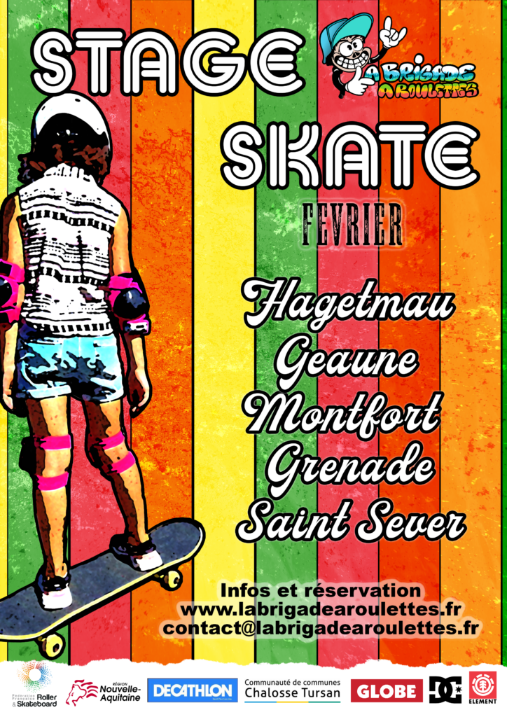 La Brigade à roulettes organise durant les vacances scolaires de février, des stages de 3 jours accessibles dès 6 ans, dans 5 communes des Landes. HAGETMAU les 6, 7 et 8 février Niveau 1 « découverte » de 10h30 à 12hNiveau 2 « intermédiaire » de 13h30 à 15h GEAUNE les 6, 7 et 8 février Niveau 1 « découverte » […]