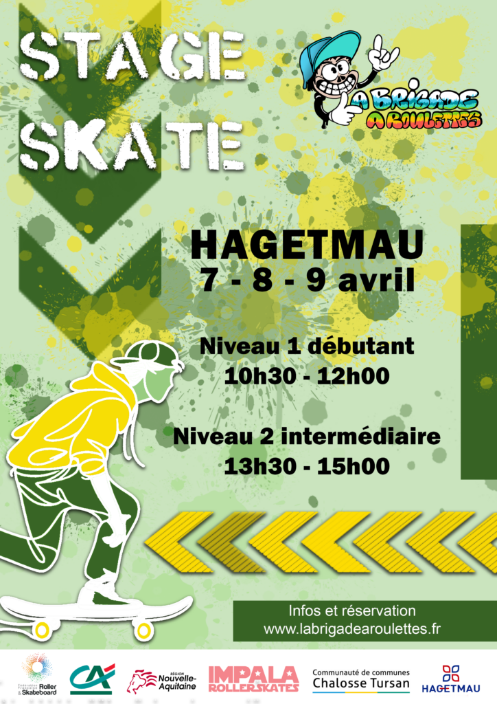 Les stages ont lieu dans les skate-parks des communes annoncées. L’ensemble du matériel (planches et protections) est fourni. Néanmoins, vous pouvez amener votre propre matériel.